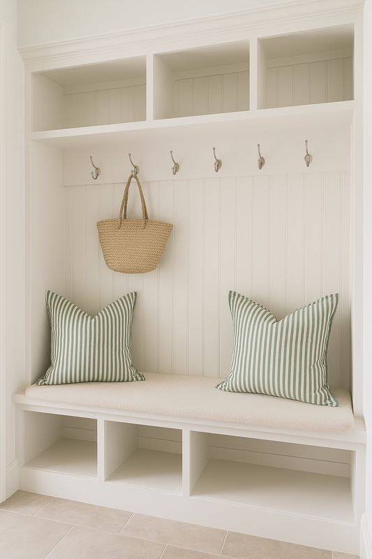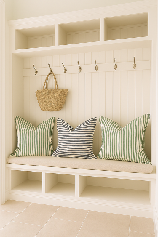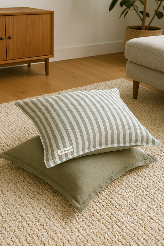 Pure French Linen Cushion Cover with Flange Detail - Sage Stripe