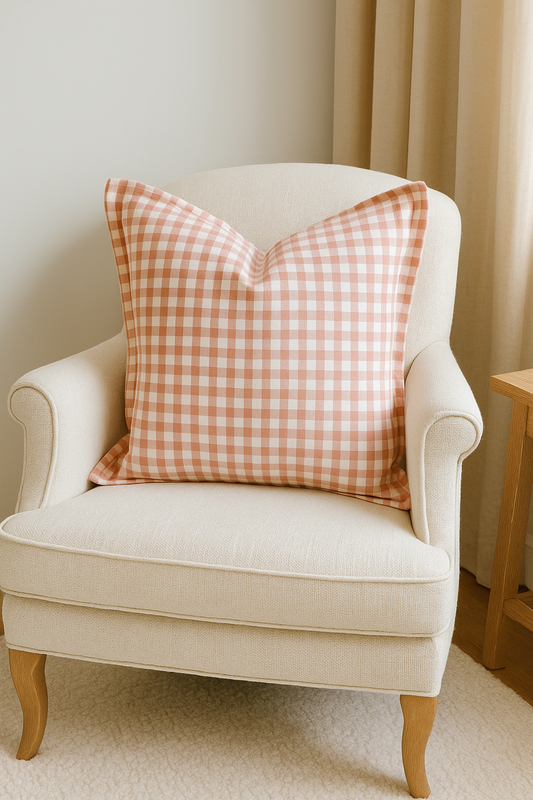 Pure French Linen Cushion Cover with Flange Detail - Blush Gingham