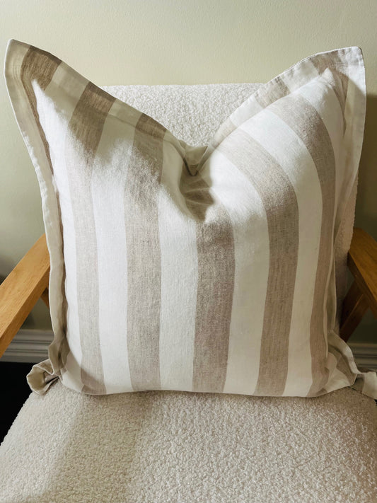 Pure French Linen Cushion Cover with Flange Detail - Natural Wide Stripe