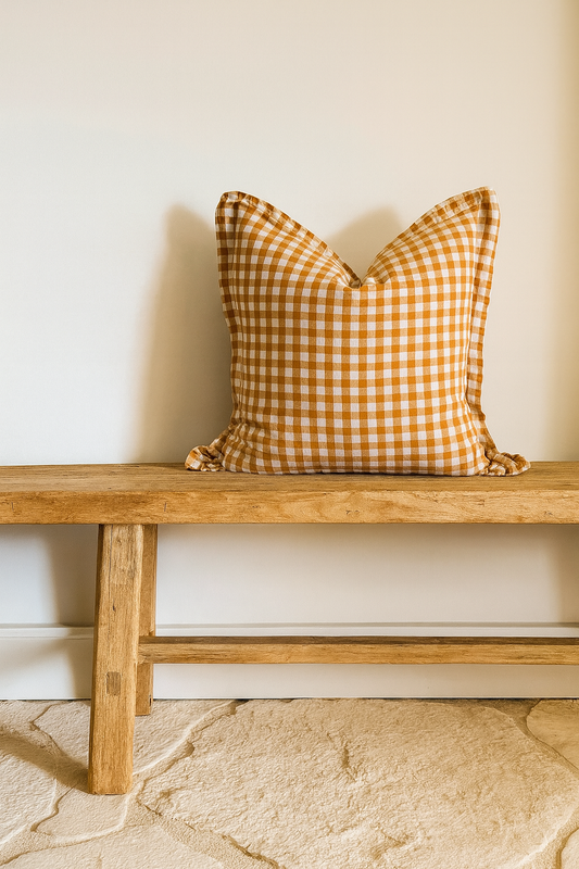 Pure French Linen Cushion Cover with Flange Detail - Toffee Gingham Small