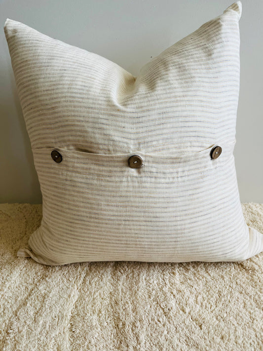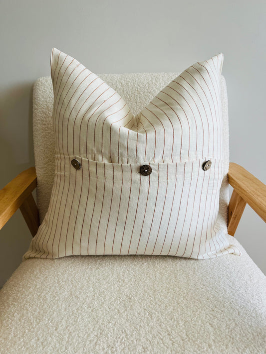Pure Linen Cushion Cover - Toffee Pinstripe