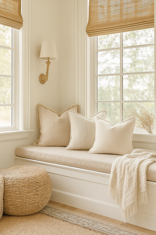 Pure French Linen Cushion Cover with Flange Detail - Nature Stripes