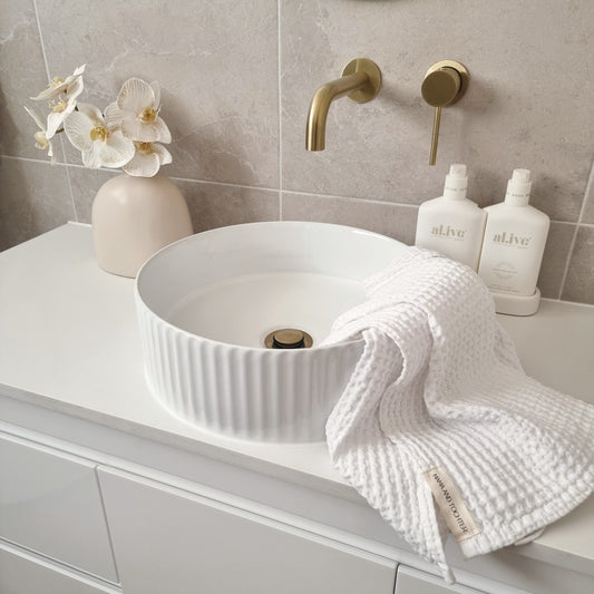 100% Organic Cotton Rustic Waffle Standard Tea Towel - Hand Towel - White