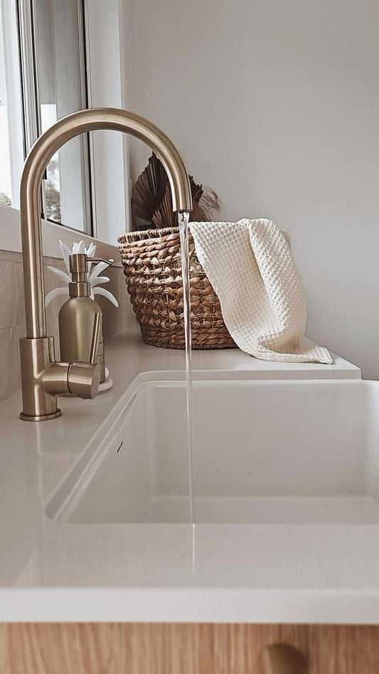 100% Organic Cotton Rustic Waffle Standard Tea Towel - Hand Towel - Khaki