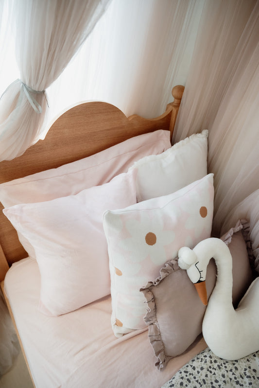 100% Organic Cotton Jacquard Knit Cushion Cover - Floral - 50% OFF