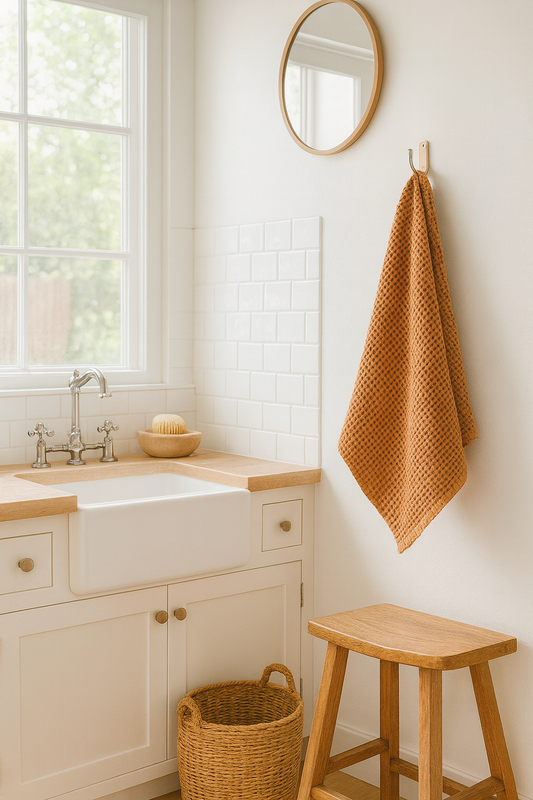 100% Organic Cotton Rustic Waffle Standard Tea Towel - Hand Towel - Cream