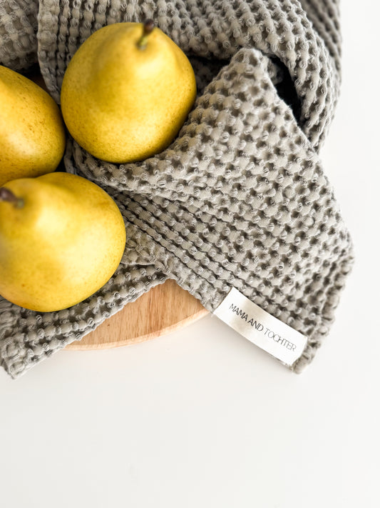 100% Organic Cotton Rustic Waffle Tea Towel Extra Large - Light Grey