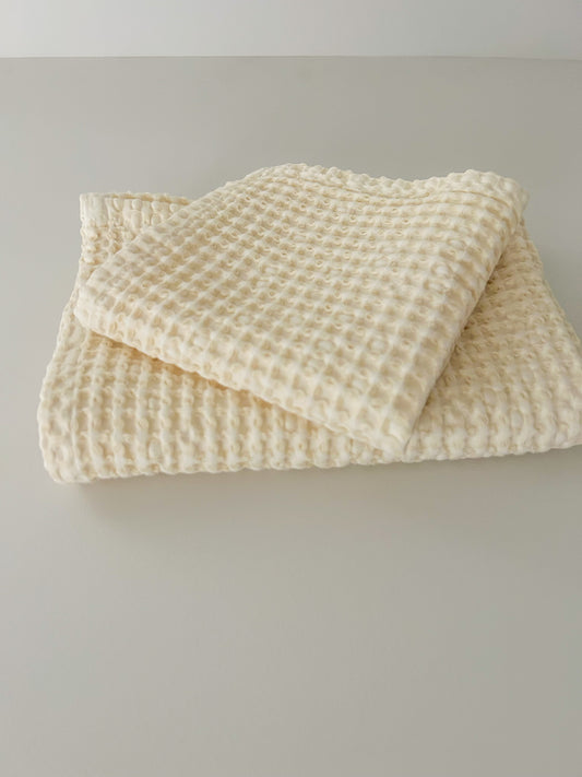 100% Organic Cotton Rustic Waffle Face Cloth - Cream