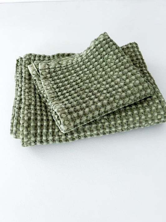 100% Organic Cotton Rustic Waffle Face Cloth - Light Olive