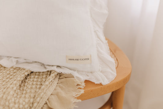 Pure French Linen Frayed Edge Ruffle Cushion Cover - White