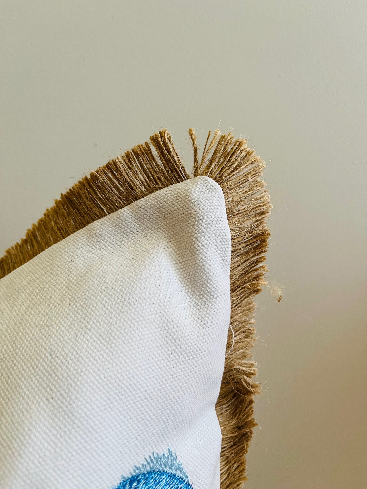 Bring a touch of coastal elegance to your space with our Palm Coast Embroidered Cushion Cover. Featuring a beautifully detailed palm tree design, each piece captures the relaxed essence of island living with refined craftsmanship. Measuring 45 x 45cm and finished with a 2.5cm natural jute fringe, this cushion combines texture and charm in perfect harmony.