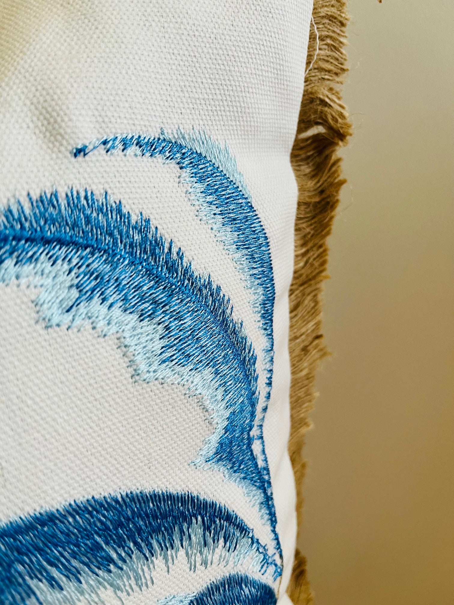 Palm Coast Embroidered Cushion Cover – Limited Edition - Blue
