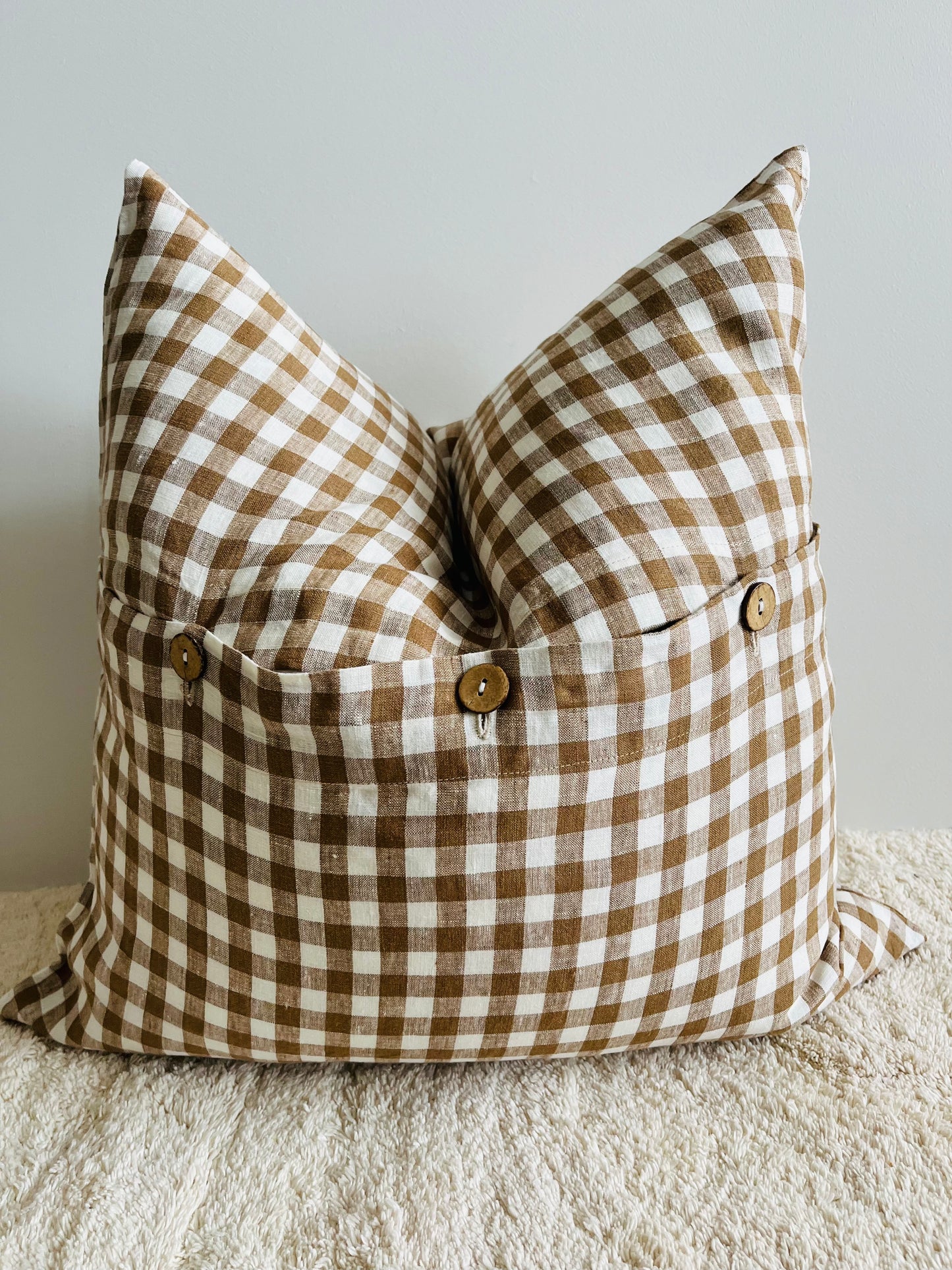 Our beautiful range of 100% pure French Linen cushion covers with coconut buttons are soft, earthy and beam neutral all over.