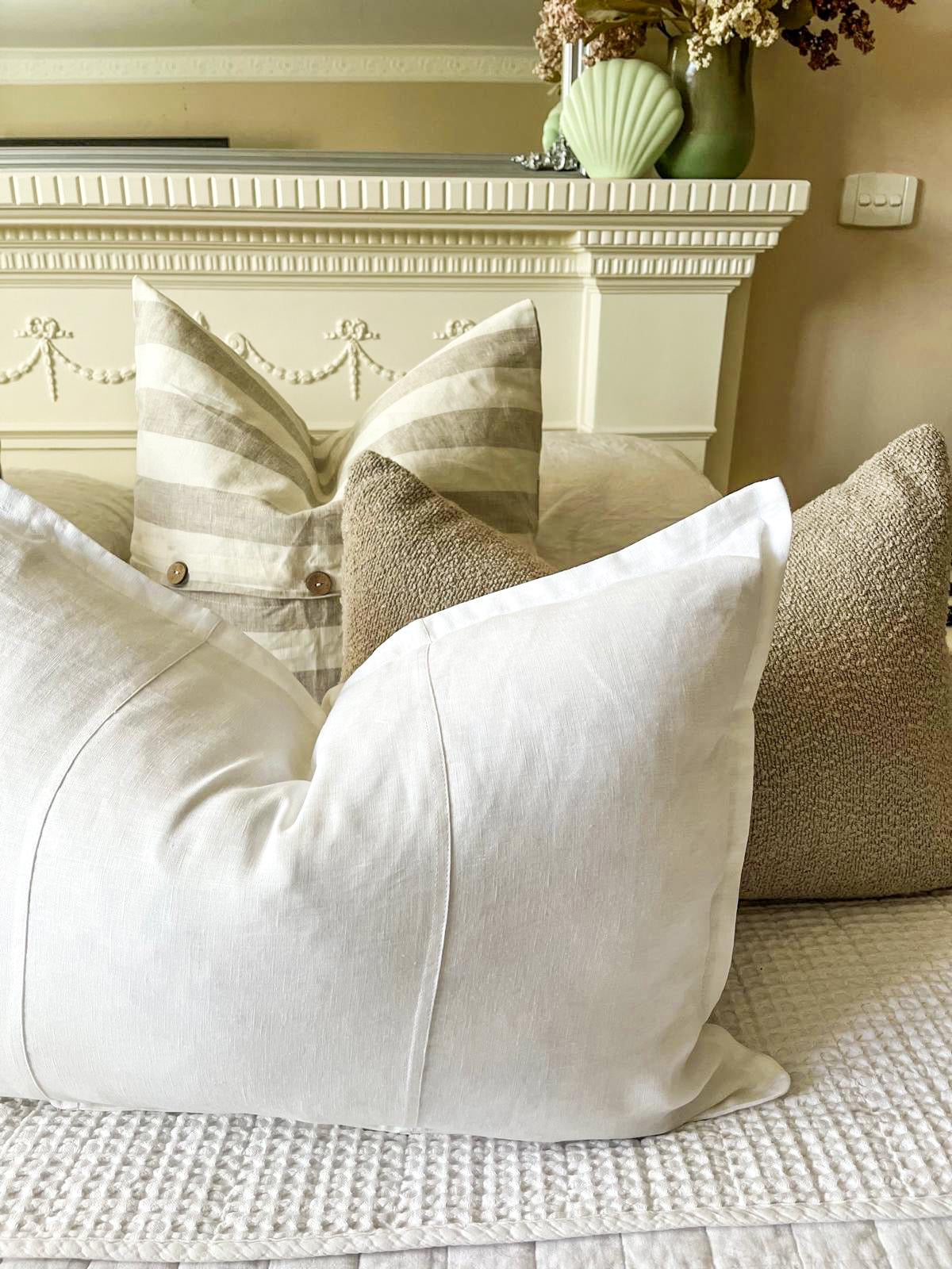 Pure French Linen Lumbar Cushion Cover with Flange Detail - White